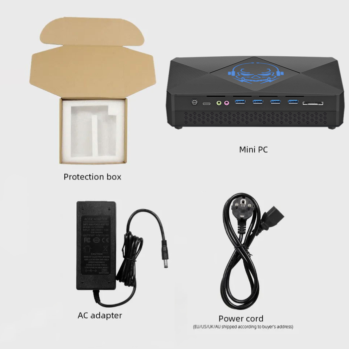 I/O Interface: 5 x USB3.2 Gen2 (10Gb), 2 x USB2.0, 1 x USB3.2 Gen2 Type-C (10Gb),1 x SD 3.0/4.0/7.0 Card,3 x HDMI 2.0, 1 x USB Type-C, Support 4 x 4K Display,1 x Power Button,Support 12V - 19V Power Input,1 x Headphone Jack, 1 x Microphone Jack